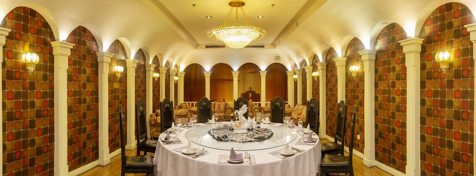 马迭尔中餐以龙菜为主,经典宴席冰雪宴、三江鱼宴,特色菜式有蒜烧鳇鱼、松茸豆花、红汁烩小牛肉等。